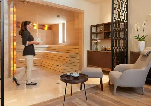 Serenitas Spa, un equipamiento de primerísimo nivel con elegantes instalaciones que disponen de suites para tratamientos individuales o en pareja, todas ellas con diván, terraza y “bañera Barcelona”. Suite con cama de arena alpha quartz y un espectacular circuito Salute per Aqua con sauna, duchas sensoriales y Vitality Pool.
