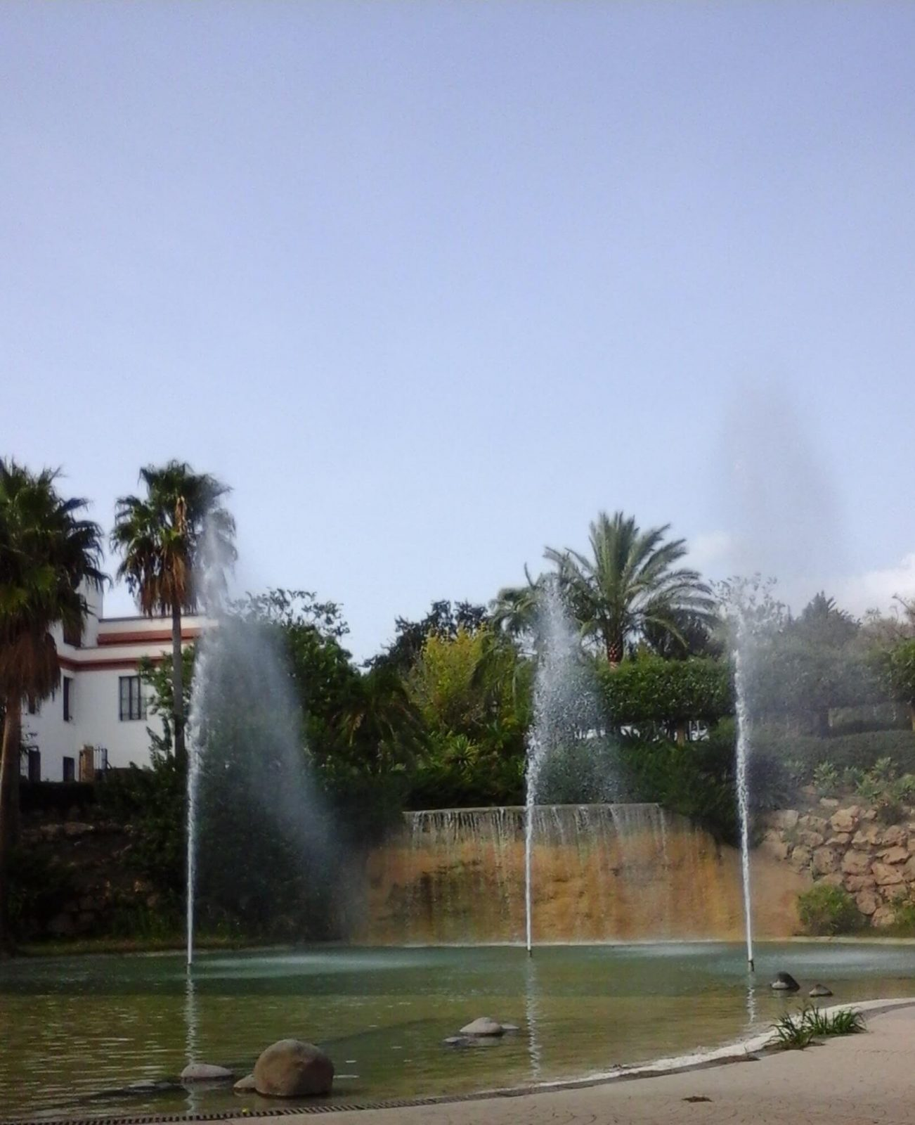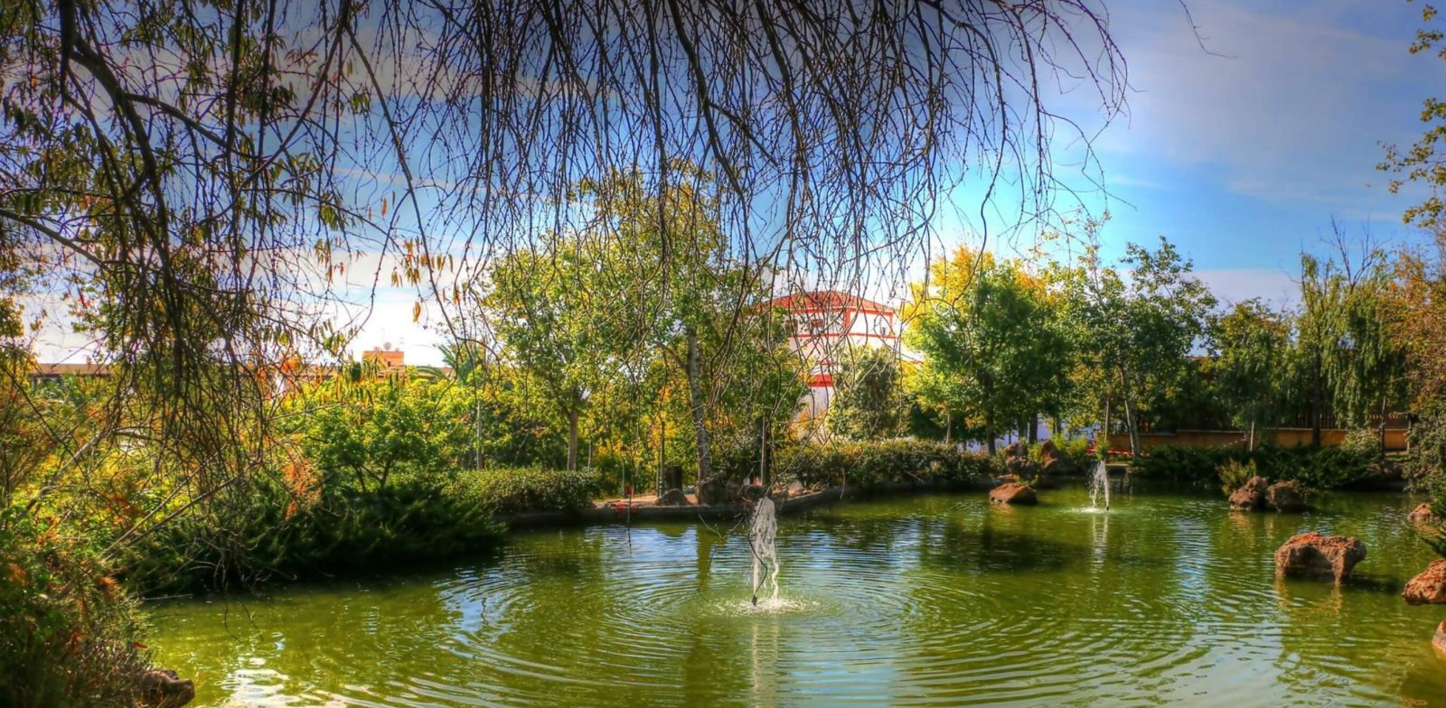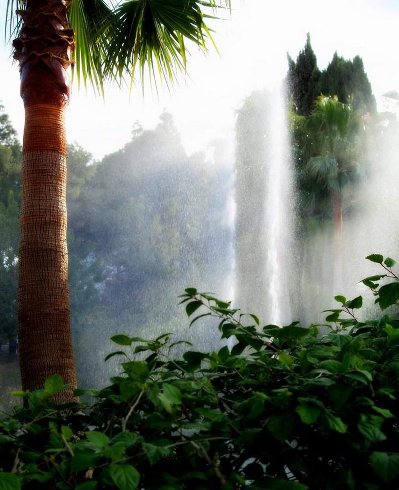 Impresionante lago-fuente con cascada y géiseres centrales de 770 m2 de lámina de agua en el corazón del parque más grande y de mayor variedad botánica de la ciudad